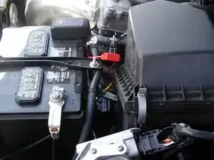 Я проложил чёрный провод 12 AWG к аккумулятору под автомобилем. Избегайте прокладки через пружины и основные подвижные элементы подвески и колёс. Есть две пластиковые крышки, в которые можно заправить провод для поддержки. Фиксаторы можно установить после проверки.