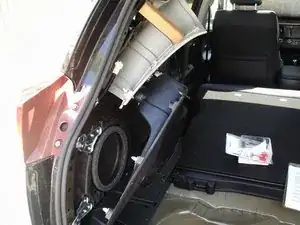 Снимите крышку грузового отсека — предварительно вынесите весь «хлам» и запасное колесо. Задняя защитная панель и грузовой лоток на стороне водителя снимаются путём выдавливания пластиковых заклёпок и откручивания металлических болтов.