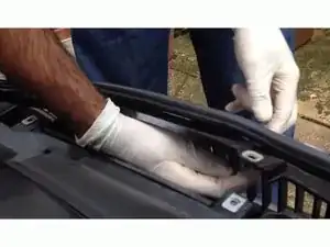 Когда у вас будет достаточно пространства, вы можете просунуть руку между зазором, чтобы выдолбить штатную решетку радиатора.