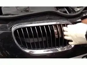 Отделите штатную решетку радиатора от зажимов, удерживающих ее на переднем бампере BMW.
