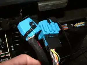 Подключите НОВЫЙ синий разъем питания к навигационному компьютеру, а оригинальный разъем — к новому жгуту проводов.