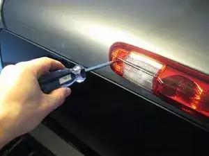 Возьмите крестовую отвертку и удалите два винта с крестообразной головкой с обеих сторон высоких стоп-сигналов.