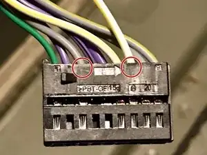 Снимите белую защитную крышку‑фиксатор с 18‑контактного разъёма, чтобы проще было идентифицировать провода. Подденьте защёлку маленькой плоской отвёрткой, чтобы вынуть разъём