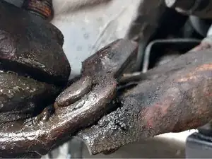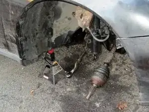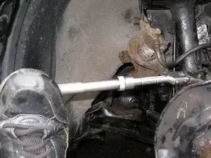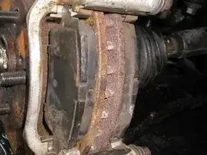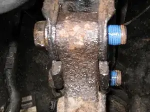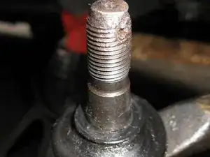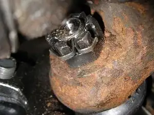 Эта работа казалась бы быстрой и простой; но усилие, необходимое для снятия деталей, таких как гайка ступицы, (машина откатывалась назад при зажатом ручном тормозе/стояночном тормозе, прежде чем гайка ослабла, и мне пришлось ставить машину на первую передачу, чтобы её открутить!) усложнило задачу. Даже при использовании проникающей смазки и горелки некоторые детали казались неподвижными, другие, например разделение нижнего шарового пальца и ступицы, были неподвижны!