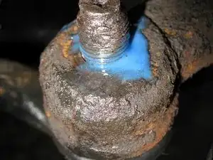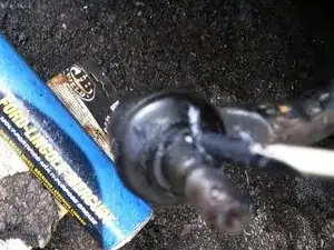 Я использовал пластиковую коктейльную трубочку, вставив её глубоко в молибденовую смазку, сплющил конец и вставил в шарнир рулевой тяги, сжимая трубочку для подачи новой смазки в шарнир. Затем провернул и удалил излишки с внешней поверхности.