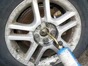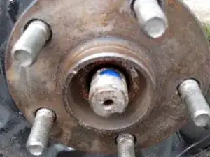 Пока машина ещё на земле, ослабьте колесные гайки и подогрейте гайку ступицы пропановой горелкой, чтобы помочь её ослабить.