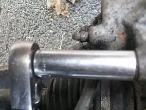 Удерживайте болт на месте (позже я купил комбинированный ключ 19 мм...) и с помощью 19 мм головки снимите гайку. (Я использовал удлинённый ключ).