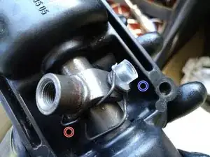 Снимите два винта с полукруглой головкой в задней части отверстия — пока проигнорируйте два потайных винта внизу.