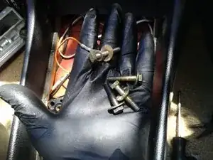 У болтов большие плоские шайбы — будьте осторожны, чтобы не уронить их в бок консоли; при необходимости используйте магнит.