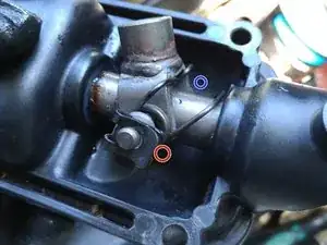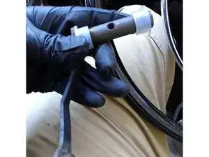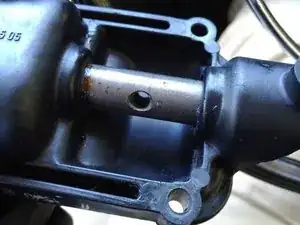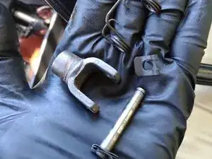 Снимите стопорное кольцо с одного конца небольшой тяги, соединяющей вилку рычага с основной тягой.