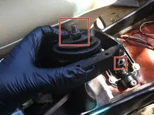 Для лучшего доступа можно оттянуть тягу переключения к задней части автомобиля (переключитесь через несколько передач), как сделал я.