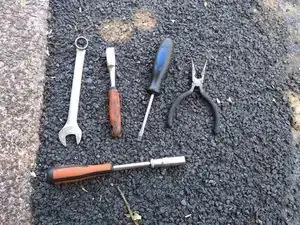 Основные инструменты, которые я использовал: крестовая отвертка Philips #2 (не на фото), маленькая плоская отвертка, маленькие плоскогубцы с тонкими губками, 10 мм глубокая головка и трещотка