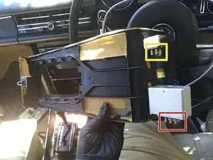 Я показал блоки и их разъёмы: жёлтым — обогрев заднего стекла, красным — аварийная сигнализация.