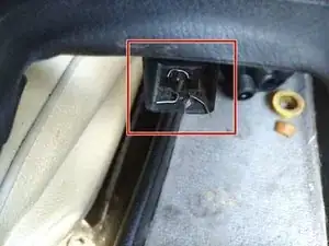В моём автомобиле пластиковая ножка с прикреплённым металлическим зажимом треснула, поэтому я добавил небольшой кусок проволоки, чтобы при следующем снятии вытащить её, не ломая (см. красный квадрат на 3-м фото).