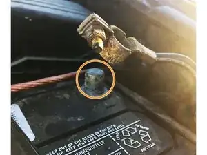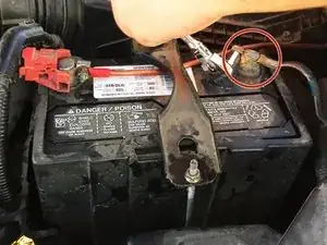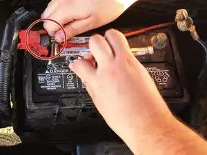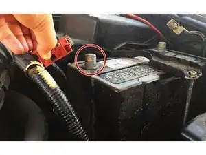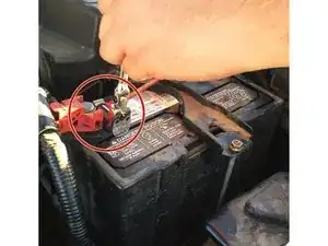 Ослабьте и снимите положительный (красный) кабель с клеммы.