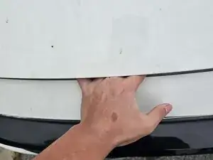Просуньте руку в пространство под капотом немного левее центра, затем сдвиньте её вправо.