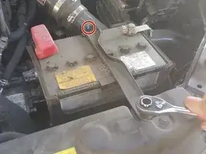 С помощью гаечного ключа на 10 мм ослабьте гайку на положительной клемме
