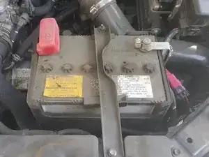 Используя гаечный ключ, ослабьте 2 гайки (5/16 дюйма) на верхней части крепления аккумулятора
