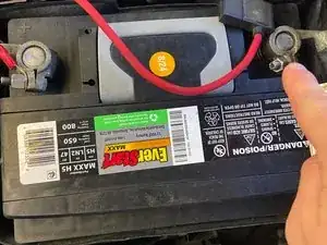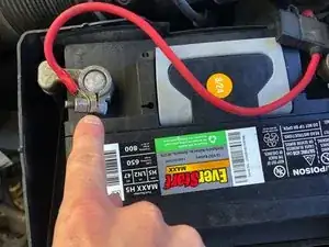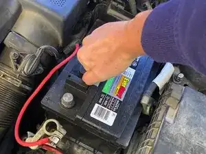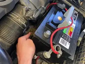 Используя трещотку с головкой, ослабьте гайку 10 мм на положительной (красной) клемме аккумулятора.