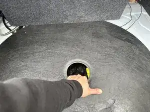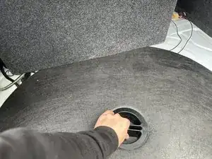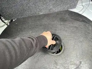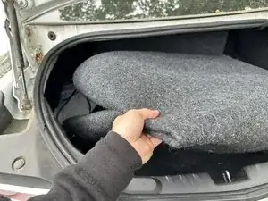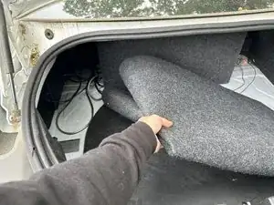 Поднимите крышку отсека запасного колеса и вытяните её, чтобы извлечь из багажника.