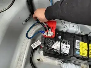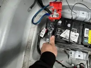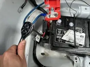 Используйте регулируемый ключ 2 мм, чтобы ослабить болт 10,1 мм, соединяющийся с положительной (красной) клеммой аккумулятора.