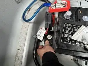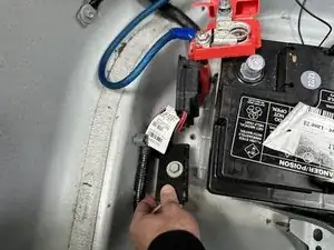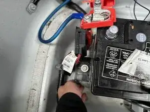 Снимите болт 13,2 мм, расположенный с левой стороны аккумулятора.