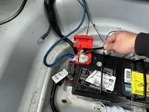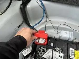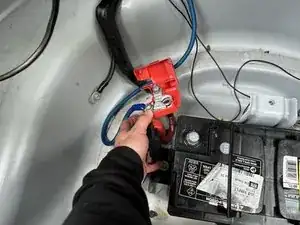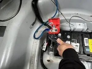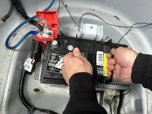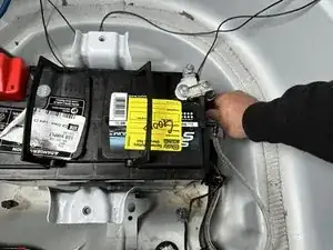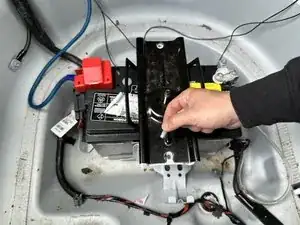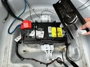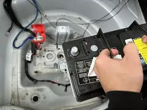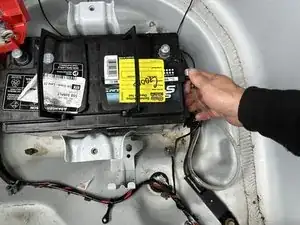 Выньте аккумулятор из багажника.