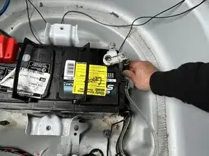 Используйте регулируемый ключ 2 мм, чтобы отвернуть гайку 10,1 мм на отрицательной (чёрной) клемме аккумулятора.