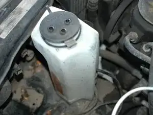 Бачок для омывателя лобового стекла не прикреплен к автомобилю винтами, гайками или болтами. Он просто находится в рамке, которая удерживает его на месте.