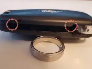 Откройте ключ. Используя маленькую отвертку, осторожно нажмите на пластиковые зажимы в отмеченных местах. Один за другим. Вам нужно немного приподнять крышку с этой стороны.