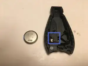 Замените батарею, следуя полярности, положительная сторона должна быть обращена к корпусу брелка.