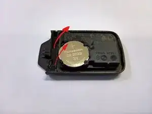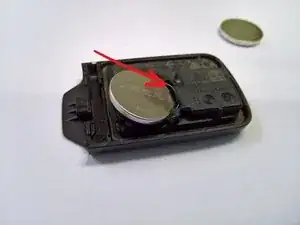 Вставьте новую батарею CR 2032 сначала с правой стороны, а затем нажмите на батарею вниз. Это должно издать хороший 'щелкающий' звук.