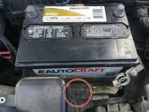 Ослабьте болт, который закрепляет аккумулятор на месте.