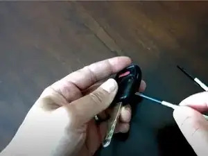 Вставьте плоскую отвертку в щель между верхней и нижней частями брелока.