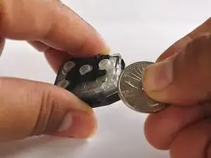 Найдите вырез, где написано «использовать монету для открытия». Нажмите на впадину монетой, чтобы разделить части.