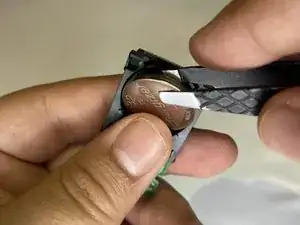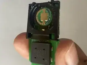 Осмотрите переднюю и заднюю стороны зелёной платы, чтобы найти батарейку.