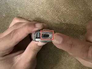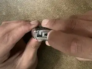 Вставьте новую батарейку сначала краем. (Она должна встать на место.)