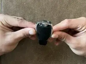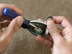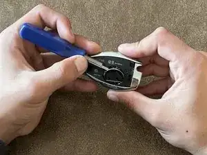 Вставьте заостренный конец лопатки в зазор между батарейкой и ключом.