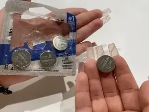 С помощью пальцев вставьте новую батарейку CR2032 в отверстие.