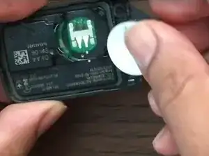 Установите новую батарейку. Следите, чтобы не повредить два зажима, удерживающих батарейку. Не нажимайте и не вдавливайте батарейку в посадочное место — подведите её под зажимы.