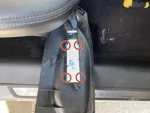 Используйте ударный гайковерт с головкой 14 мм, чтобы открутить болты, фиксирующие сиденье. Два спереди и два сзади.