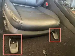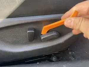 Осторожно извлеките оба выключателя регулировки сиденья с помощью лопатки для обшивки.