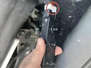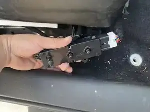Отодвиньте разъём от батарейки и извлеките батарейку выключателя регулировки сиденья.