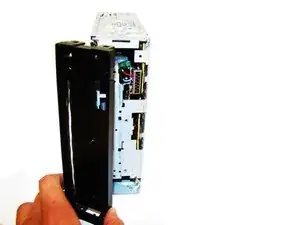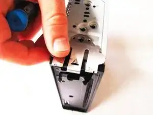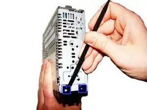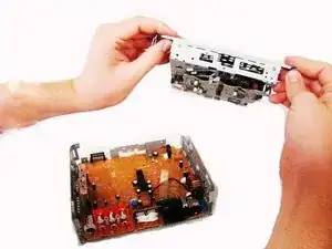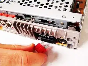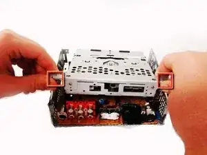 Схватите две защёлки, расположенные ближе к задней части стереосистемы, и аккуратно вытяните CD-привод из остальной части устройства.