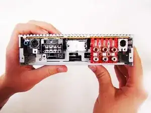 Снимите чёрную переднюю панель стереосистемы.