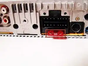 Осторожно выньте предохранитель из задней части стереосистемы.