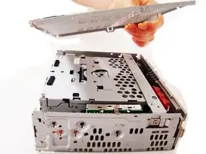 Возьмитесь за верхнюю часть стереосистемы в области CD-привода и аккуратно потяните вверх, чтобы освободить её; полностью извлечь не получится.
