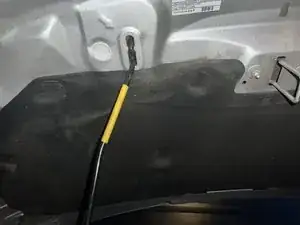 Вставьте стекло держателя капота в предназначенное отверстие, чтобы удерживать капот открытым во время работы.