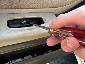 Удалите один винт Phillips, скрытый под ручкой.