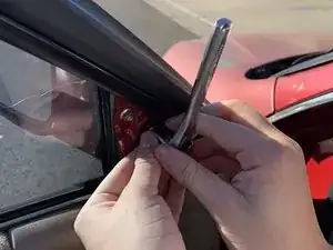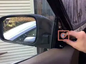 Подвиньте пластиковый элемент в сторону дверцы, чтобы снять боковое зеркало.